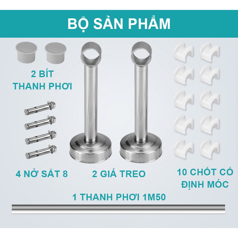 Nhà cửa & Đời sống > Dụng cụ chăm sóc nhà cửa > Dây phơi & giá phơi quần áo || Giàn phơi gắn trần Inox, NIKITA GPGTR, Thanh ngang 1,5mCòn hàng