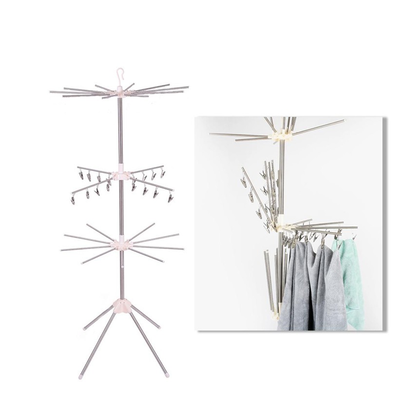 Cây phơi quần áo đứng Pier 3 tầng xoay 360 độ, chất liệu inox dễ dàng gấp gọn, tiết kiệm không gian