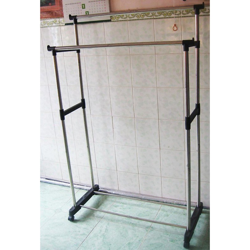 GIÀN PHƠI QUẦN ÁO 2 TẦNG THÔNG MINH CÓ BÁNH XE DI CHUYỂN❣️Giàn phơi inox thông minh 2 tầng có bánh xe di chuyển với thiết kế thông minh lắp ráp nhỏ gọn dễ dàng mang đi du lịch, về quê nội ngoại, và đặc biệt thích hợp với nhà Chung Cư, giàn phơi đồ giúp bạn treo được nhiều đồ hơn, tiết kiệm không gian hơn và đặc biệt là tiện dụng hơn bao giờ hết.