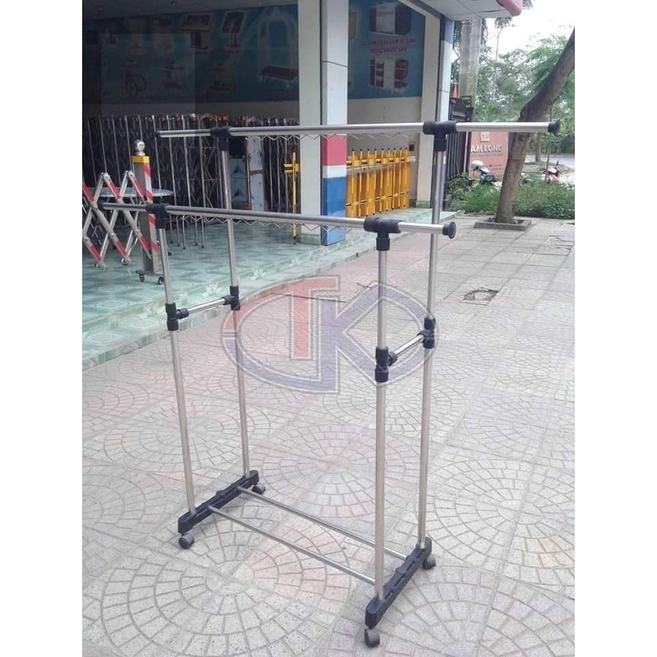 Giàn phơi quần áo inox 2 tầng có bánh xe
