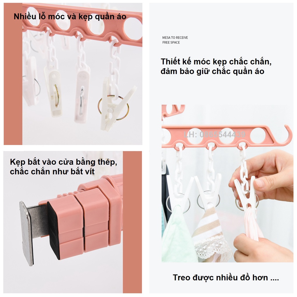 ✅ Giờ đây, bạn có thể phơi quần áo tại rất nhiều nơi với sản phẩm có thiết kế đặc biệt này. Được chế tạo với kẹp thông minh giúp bạn có thể phơi quần áo ngay tại ban công, buồng vệ sinh bằng cách bắt chặt sản phẩm vào khung cửa sổ, lan can, tay cầm cửa. Tiện dụng, gấp gọn, bạn cũng có thể cầm theo sản phẩm đi mọi nơi và treo đồ ngay trong phòng khách sạn mà không cần khoan, bắt vít hay sử dụng đến các sản phẩm cồng kềnh khác.