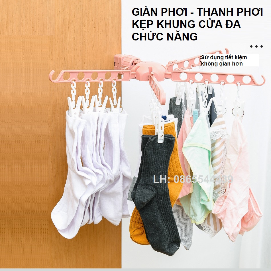 Nhà cửa & Đời sống > Dụng cụ chăm sóc nhà cửa > Dây phơi & giá phơi quần áo || Giàn phơi quần áo, thanh treo đa năng kẹp khung cửa xoay 4 hướngCòn hàng