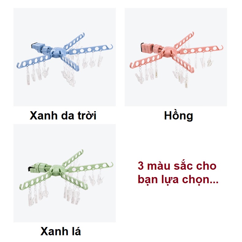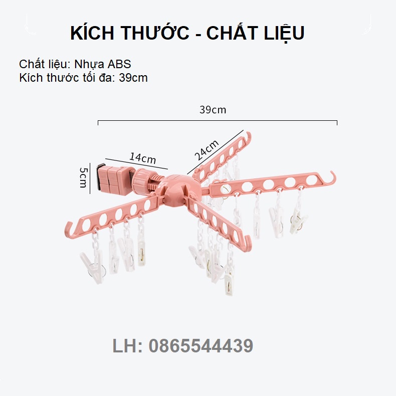✅ Được làm từ chất liệu nhựa PP và thép không rỉ. Sản phẩm Giàn phơi, treo quần áo thông minh "Siêu rẻ" dành cho chung cư, văn phòng, du lịch có 4 tay với 5 lỗ treo đồ trên mỗi tay, bạn treo được nhiều đồ hơn, gọn gàng hơn và giúp quần áo mau khô và không nhăn nhúm. Ngoài ra, sản phẩm có có thiết kế thêm kẹp móc, giúp cho bạn kẹp quần áo chắc chắn, không sợ rơi bẩn, hay gặp gió to. Giàn phơi chịu được vật nặng tối thiểu 5kg trên mỗi thanh phơi, có thể treo áo da, áo lông và nhiều vật nặng khác.