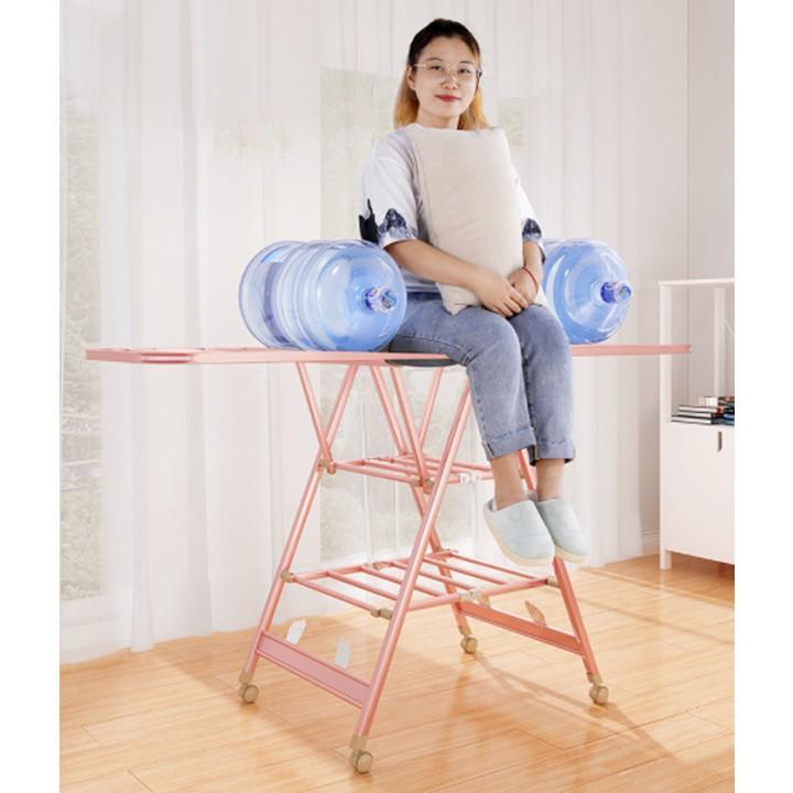 Giá treo quần áo có thể mở rộng về 2 bên giúp bạn thoải mái phơi phóng chăn mà, ga mà không sợ vấy bẩn