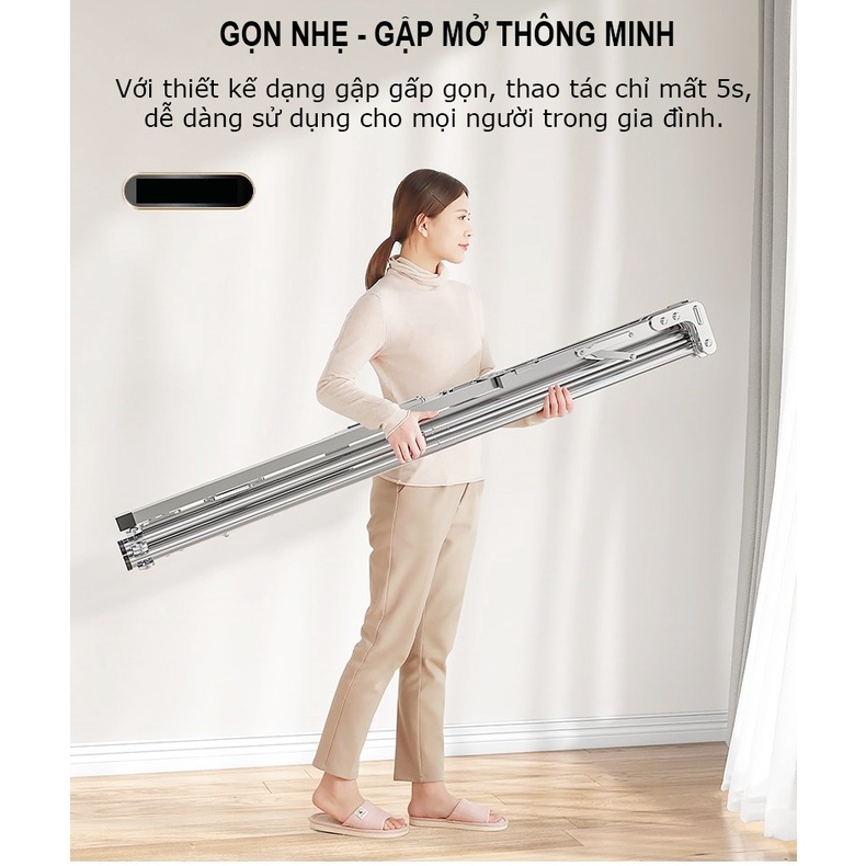Giàn Phơi Quần Áo Thông Minh Gấp Gọn, Cây Inox bền 20 năm, Inox 304 Cao cấp Siêu Bền, Chịu Tải 150Kg MKS028