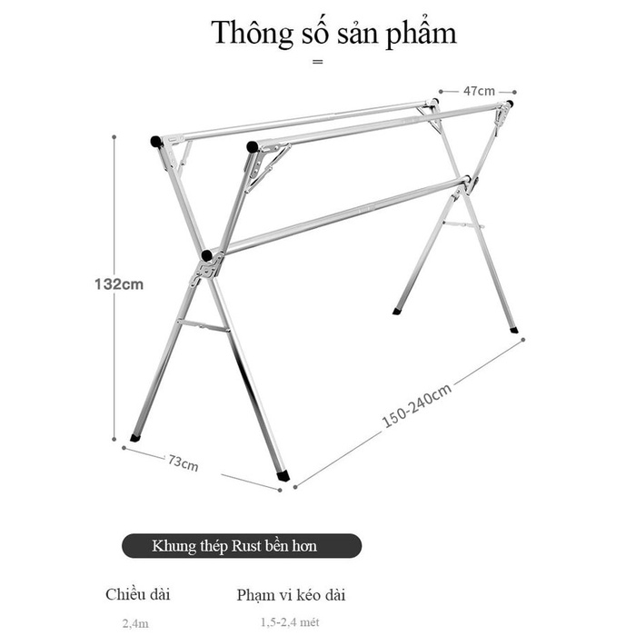 🔹 Kích thước: 1.6m ( Kéo rút thông minh )
