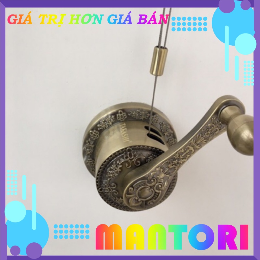 - Bộ tời hay còn gọi là phần tay quay của giàn phơi thông minh nhập khẩuTakashi H-006 được làm từ chất liệu hợp kim thép cao cấp nguyên khối VỚI HOA VĂN CỔ TRẠM KHẮC TINH XẢO sáng bóng và bền bỉ với thời gian. Đây là bộ phận quan trọng nhất của giàn phơi thông minh gắn trần giúp nâng lên, hạ xuống các thanh phơi.