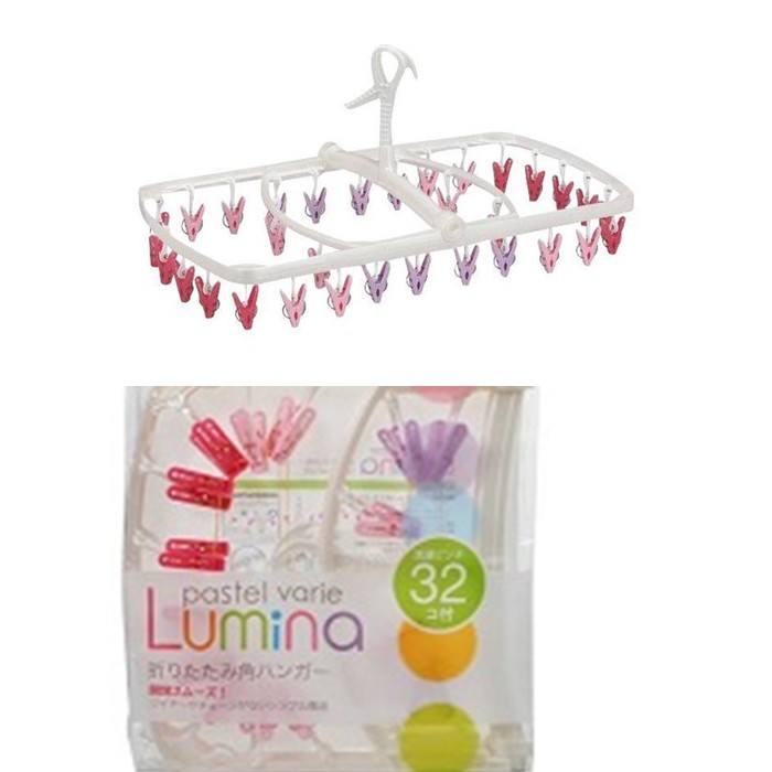 - Móc gồm 32 kẹp thích hợp phơi các đồ như khăn, tất, tã trẻ nhỏ, giúp tiết kiệm diện tích khi phơi đồ