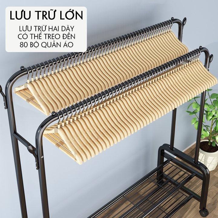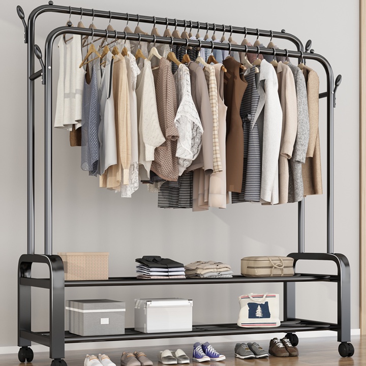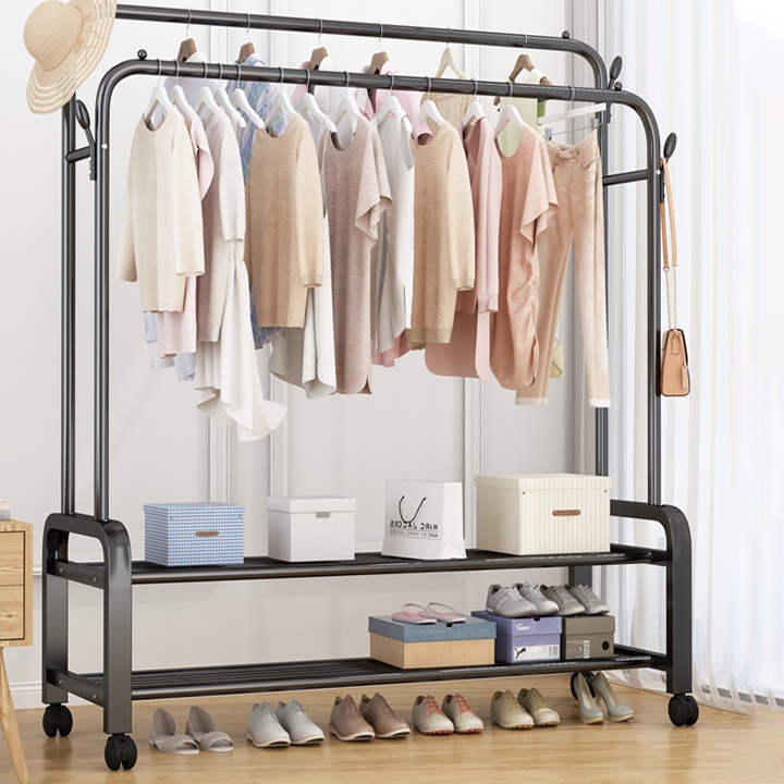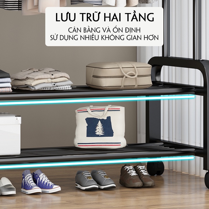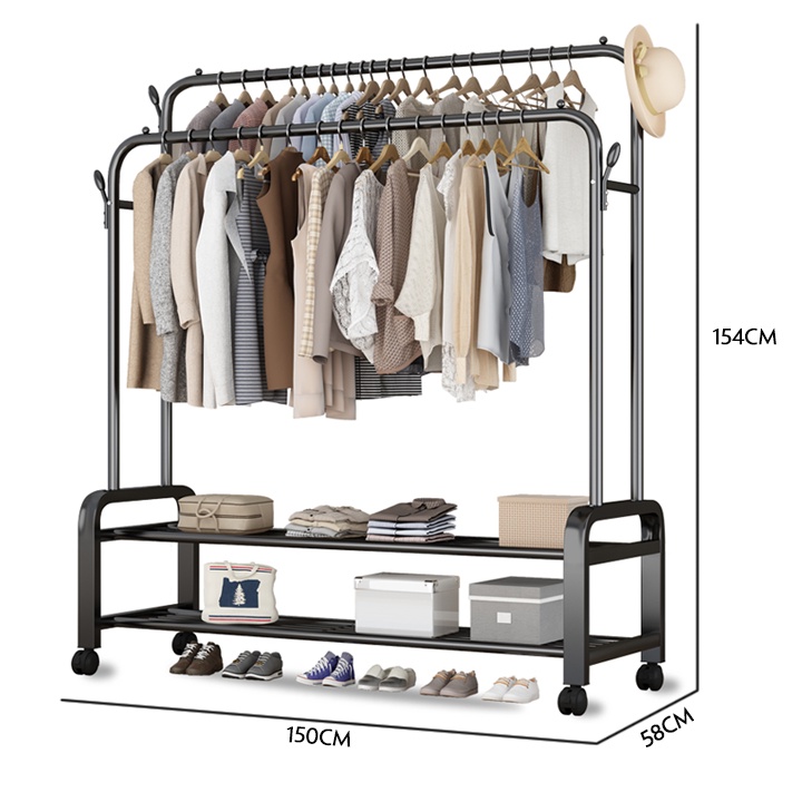 Dàn treo quần áo đôi thép đen thiết kế đa năng có thể treo quần áo, bên dưới để giày dép, các vật dụng sinh hoạtGiàn treo được thiết kế thông minh chiều cao phù hợp khi treo cả quần áo nhiều loại kích cỡ khác nhau