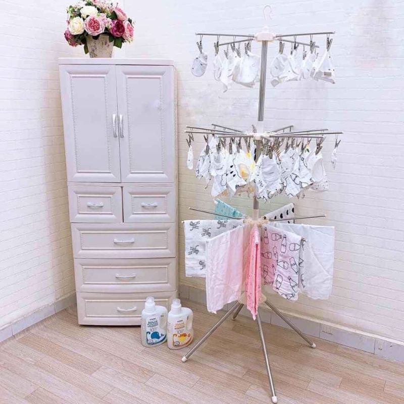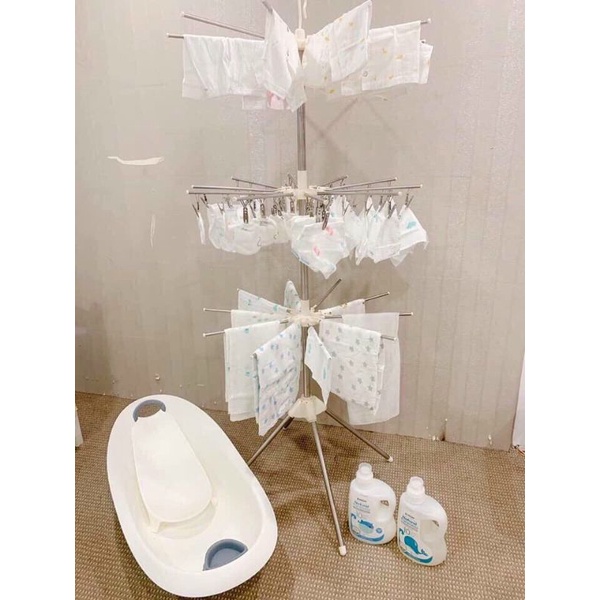 - Giá treo có 3 tầng phơi nên rất tiện dụng và linh hoạt khi phơi các loại đồ với kích thước khác nhau : khăn sữa, quần áo, mũ tất,...