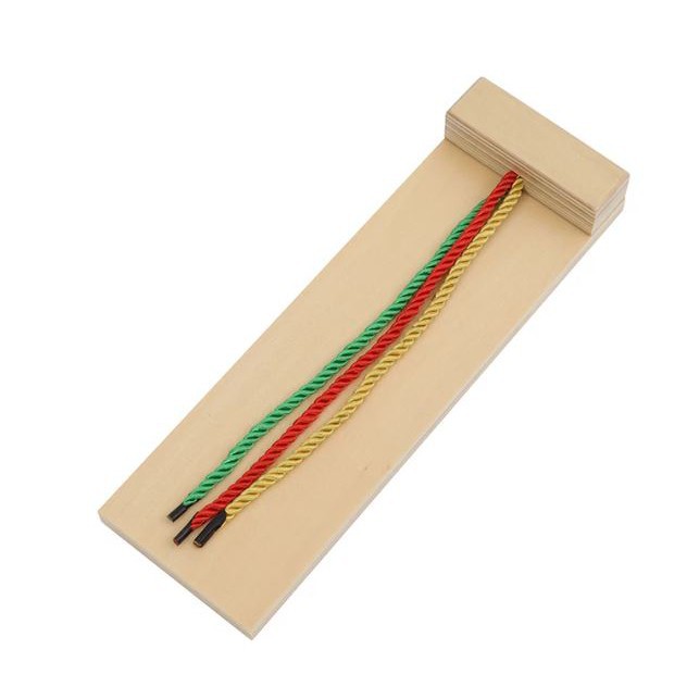 THÔNG TIN SẢN PHẨM:- Bộ sản phẩm gồm: 1 bảng gỗ kèm 3 dây màu khác nhau có cùng chiều dài được gắn ở phía trên.