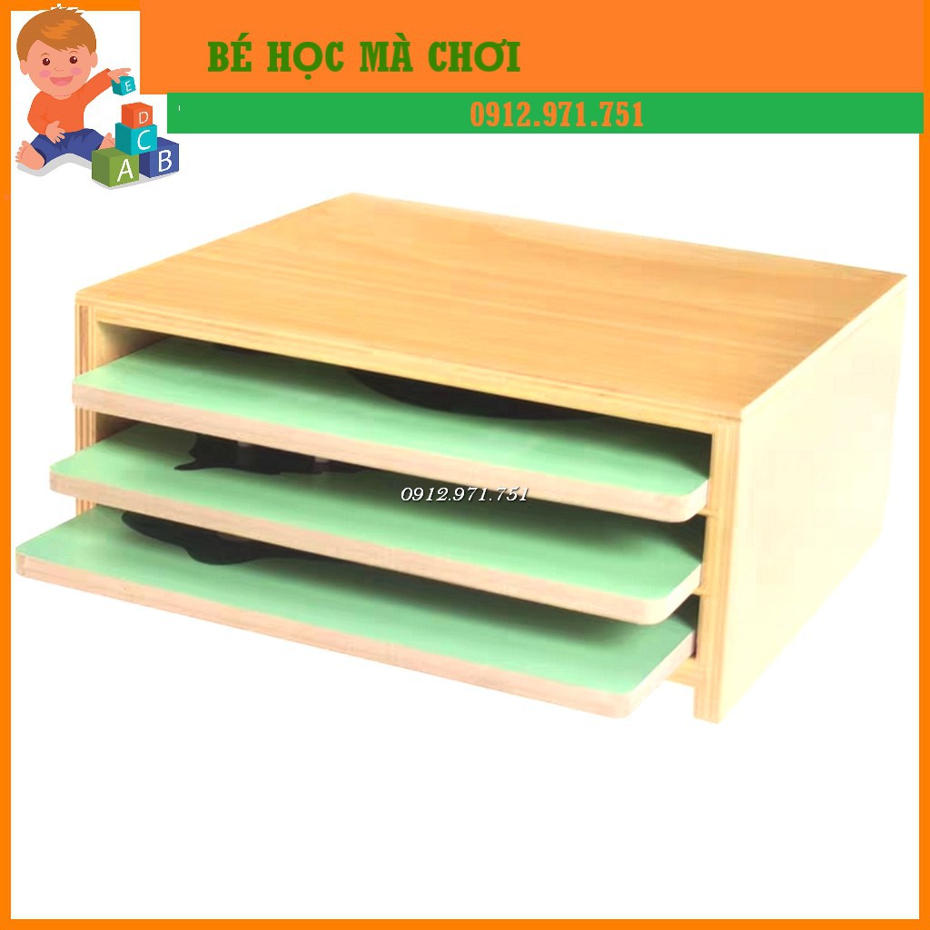 Giáo cụ Montessori - Kệ 3 tầng đựng tranh ghép sinh học