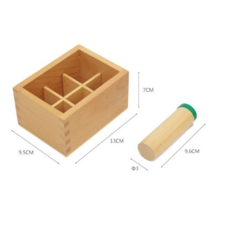 Giáo cụ montessori - Ống âm thanh - Sound CylindersMột trong những giáo cụ giúp bé phát triển khả năng thình giác, thông qua sự phân biệt rất nhỏ giữa những âm thanh.