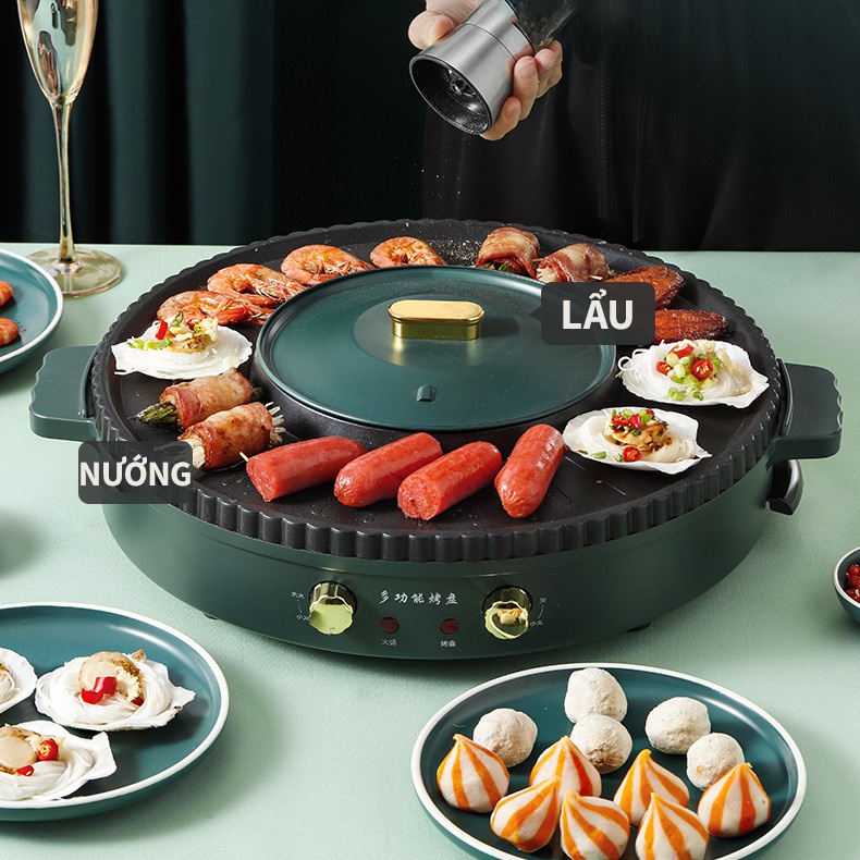 [Giao Hàng Hoả Tốc] Nổi Lẩu Nướng 2 trong 1 đa năng cao cấp, Bếp Lẩu Nướng 2 trong 1 - Bảo Hành 12 Tháng