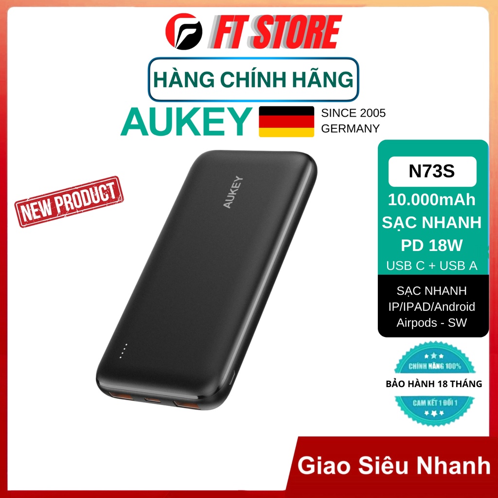 SẠC DỰ PHÒNG 10.000 MAH AUKEY PB-N73S và N73✅Nhỏ nhưng mạnh mẽ: Một trong những bộ sạc di động 10000mAh nhỏ nhất và nhẹ nhất hiện có. Dễ dàng nằm gọn trong lòng bàn tay của bạn và đèn báo LED tối giản hiển thị lượng điện còn lại trong nháy mắt.