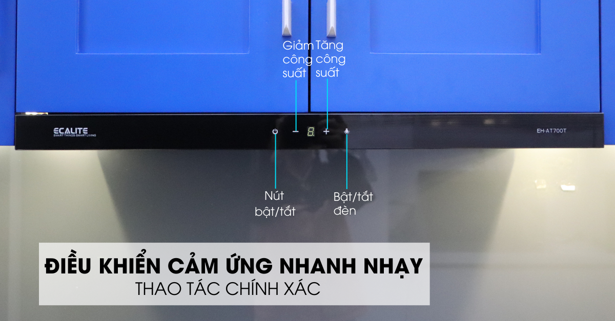 Để tăng thêm tính hiện đại và tiện ích khi sử dụng, máy hút mùi âm tủ EH-AT700T được Ecalite trang bị bảng điều khiển cảm ứng cực nhanh nhạy, kết hợp là màn hình LED hiển thị trực quan giúp người dùng dễ dàng quan sát và điều chỉnh các chức năng khi sử dụng.