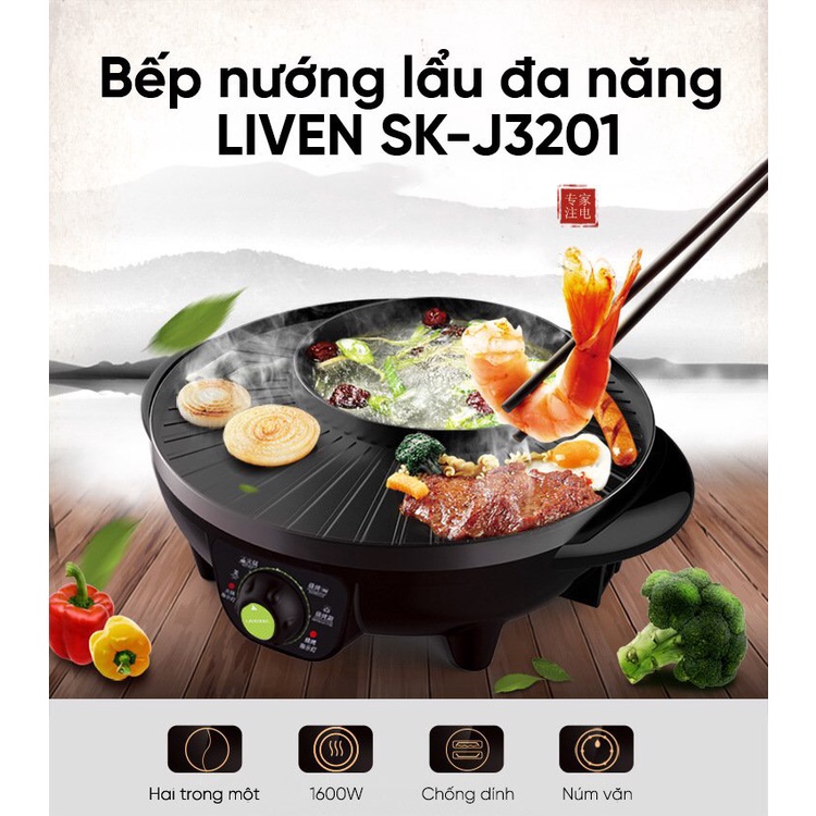 Cũng như các loại bếp lẩu nướng trên thị trường là dụng cụ nhà bếp sử dụng điện năng để chuyển hóa thành nhiệt năng nhằm mục đích phục vụ 2 chức năng song song đó là nấu lẩu và nướng thực phẩm. LIVEN SK-J3201 là một chiếc bếp đa năng, thiết kế hoàn thiện tốt, vật liệu cao cấp và đặc biệt là dung tích đủ cho nhu cầu sử dụng trong gia đình từ 3-5 người.