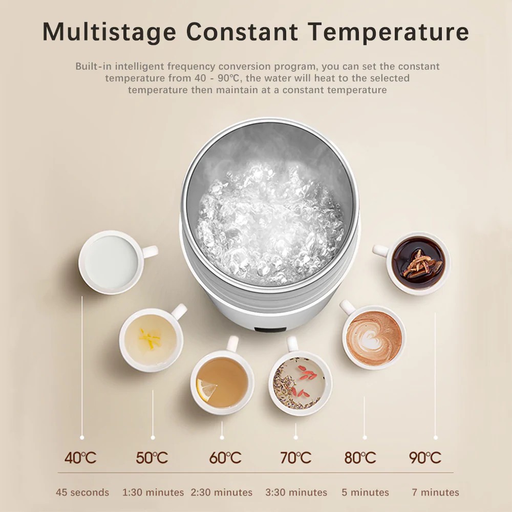 Công suất mạnh mẽ 300W cùng công nghệ đun sôi 3 chiều sẽ rút ngắn thời gian đun sôi chỉ mất khoảng 8 phút 30 giây vô cùng nhanh chóng. Hơn nữa bạn còn có thể tùy chỉnh mức nhiệt độ đun sôi vô cùng linh hoạt, phù hợp với nhu cầu sử dụng của mình ở các mức nhiệt độ từ 40 °C- 90 °C.