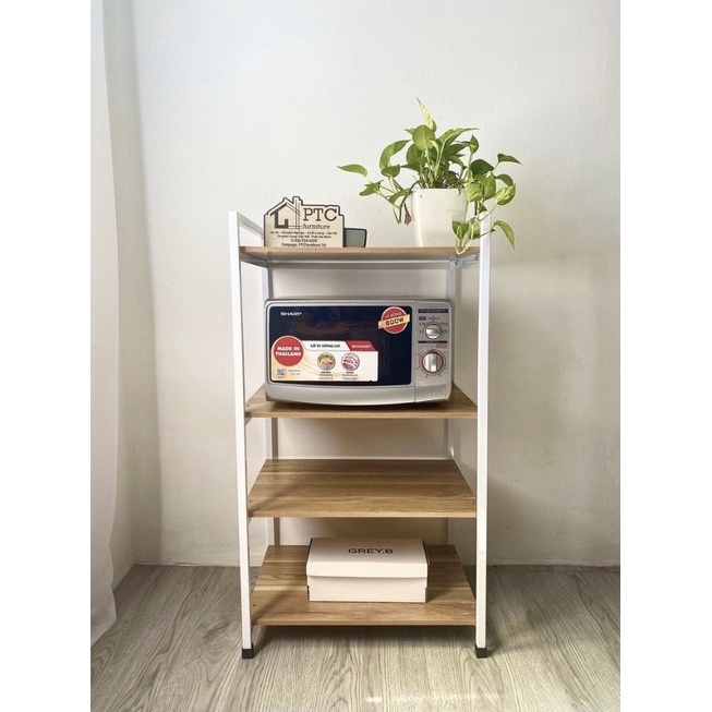 Kệ để lò vi sóng 4 tầng chất liệu khung sắt sơn tĩnh điện, giá gỗ cao cấp cực chắc chắn l Kệ lò vi sóng 4 tầng chắc chắn