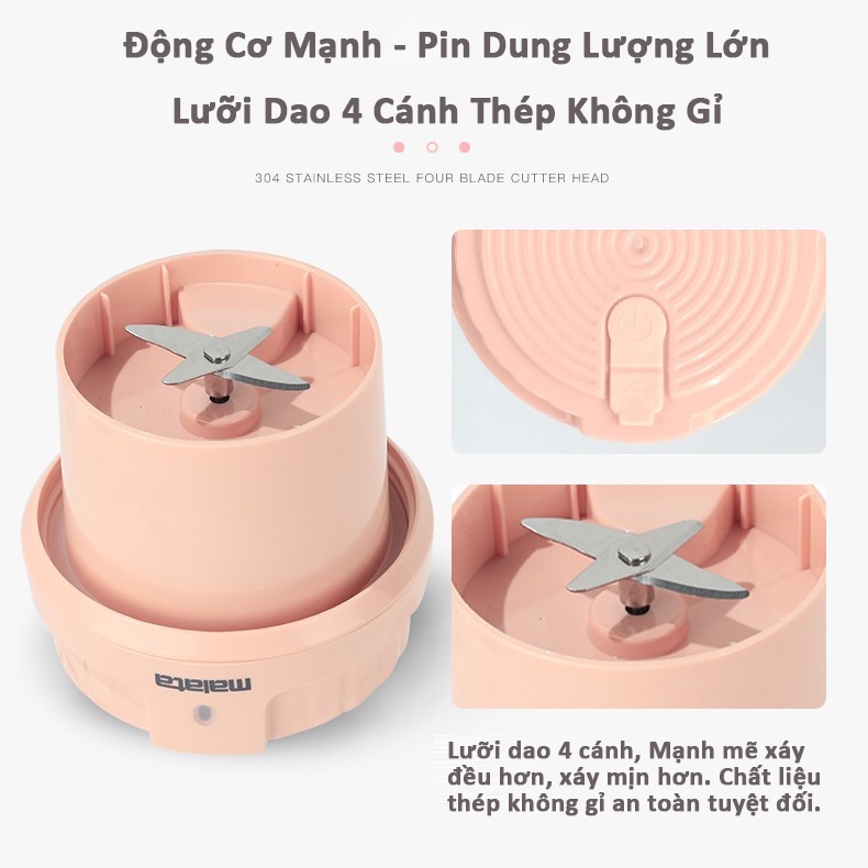 Máy Xay Sinh Tố Mini MALATA 220ml Có Sạc Pin USB - Bảo Hành 12 ThángMáy Xáy Sinh Tố Mini Cầm Tay MALATA