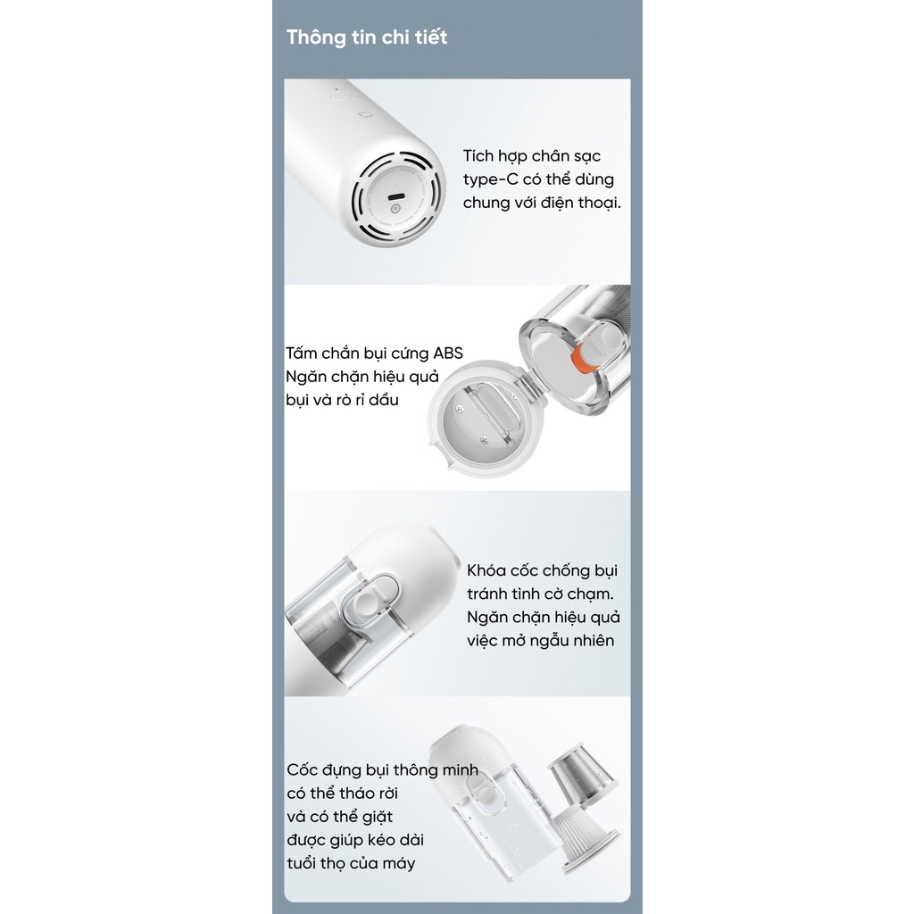 👍 Cốc chứa bụi của Mijia Handy còn được trang bị hệ thống lọc lõi kép, lưới thép lọc sơ cấp và bộ lọc HEPA