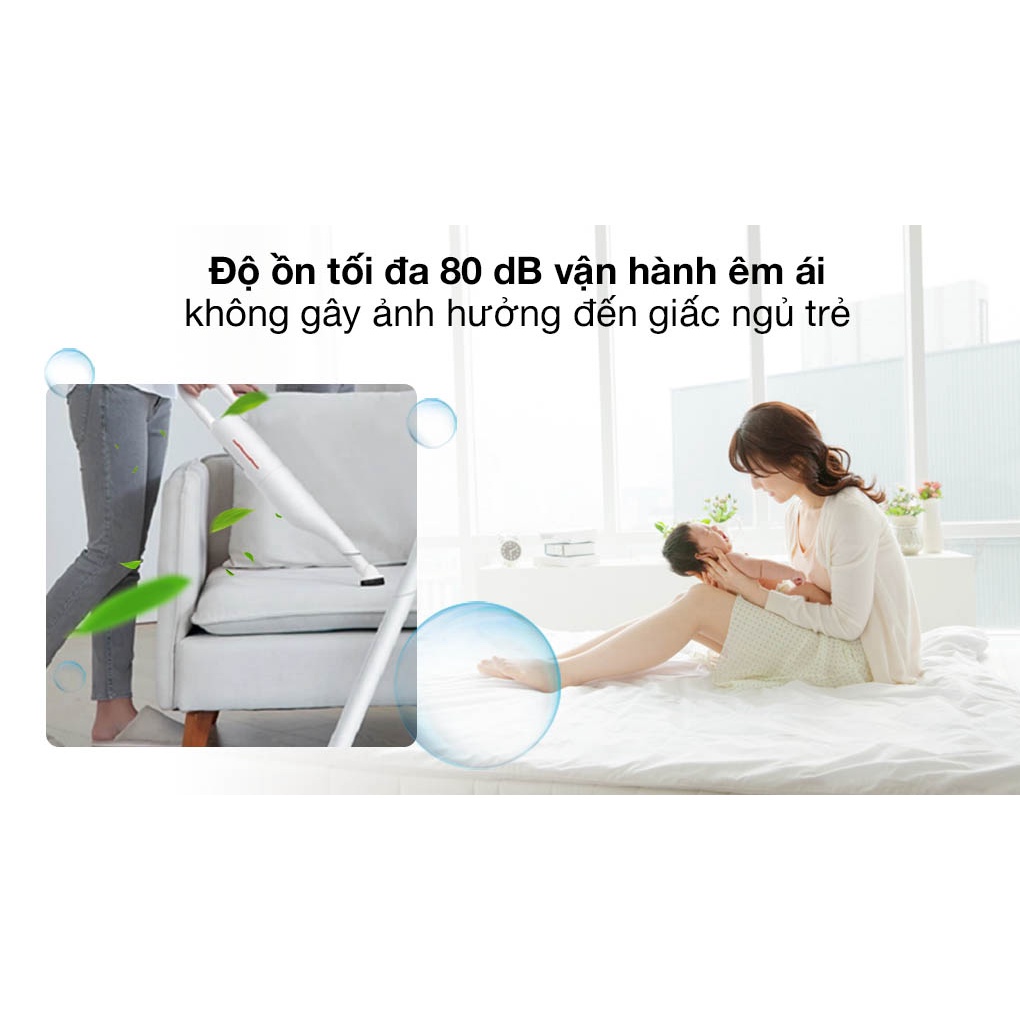 • Thời lượng pin lâu: Mỗi lần sạc đầy pin cho thời gian sử dụng lên tới 30 phút liên tục, giúp bạn làm sạch toàn ngồi nhà với chỉ một lần sạc.