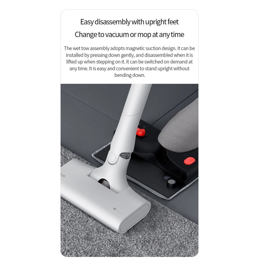 👍 Tích hợp tính năng lau ướt: Bên cạnh tính năng hút bụi, máy còn có thể chuyển đổi sang tính năng lau nhà khá tiện lợi