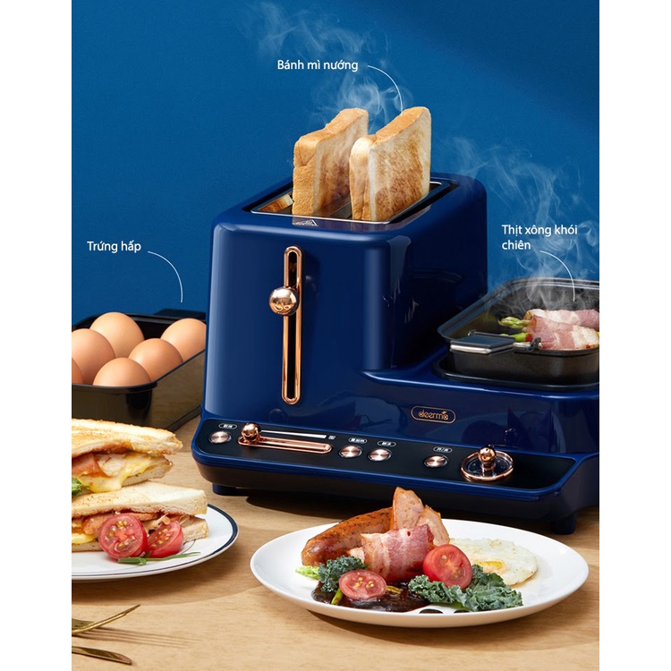 Deerma ZC10 là một thiết bị gia dụng giúp bạn có thể tiết kiệm thời gian chế biến đồ ăn sáng cho gia đình một cách hoàn hảo, đảm bảo bữa ăn đầy đủ dinh dưỡng cho các thành viên.- Bạn có thể cùng lúc sử dụng máy Deerma ZC10 để nướng bánh, chiên, hấp, tất cả trong một
