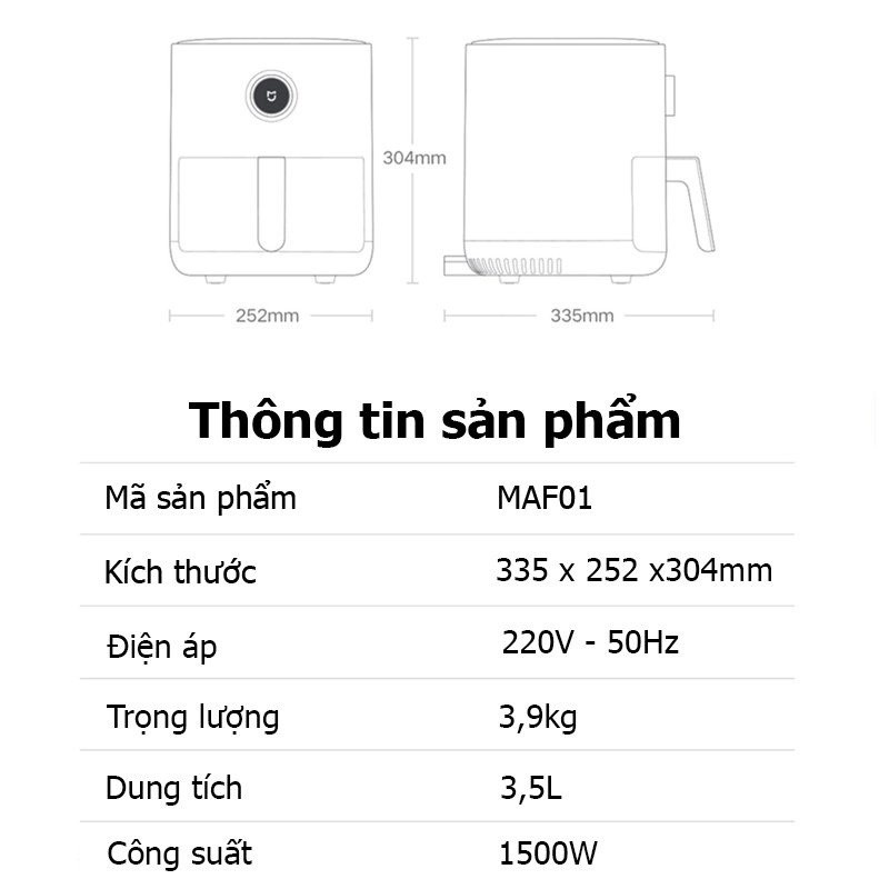 Nồi Chiên Không Dầu Xiaomi Mijia Smart Air Fryer 3.5L MAF01 cao cấp nội địa chính hãng█ Thông số kĩ thuật: