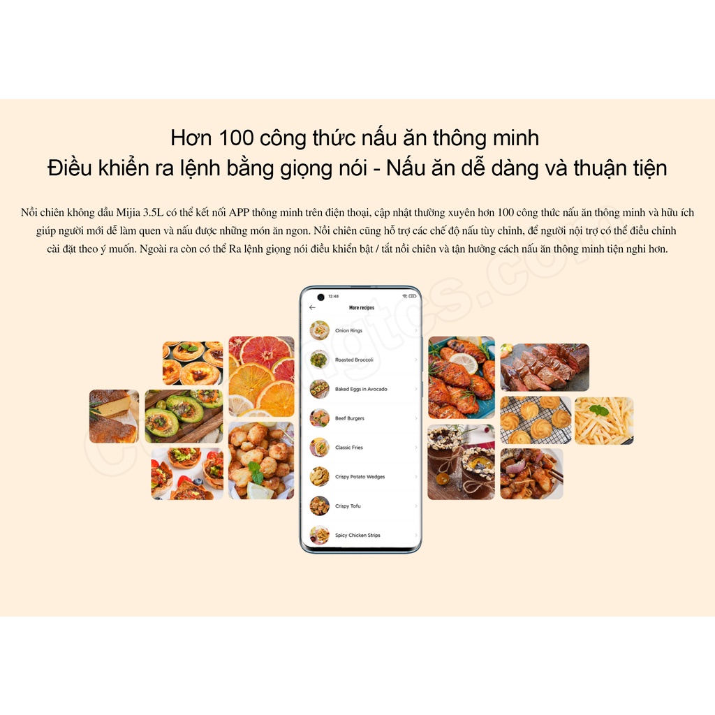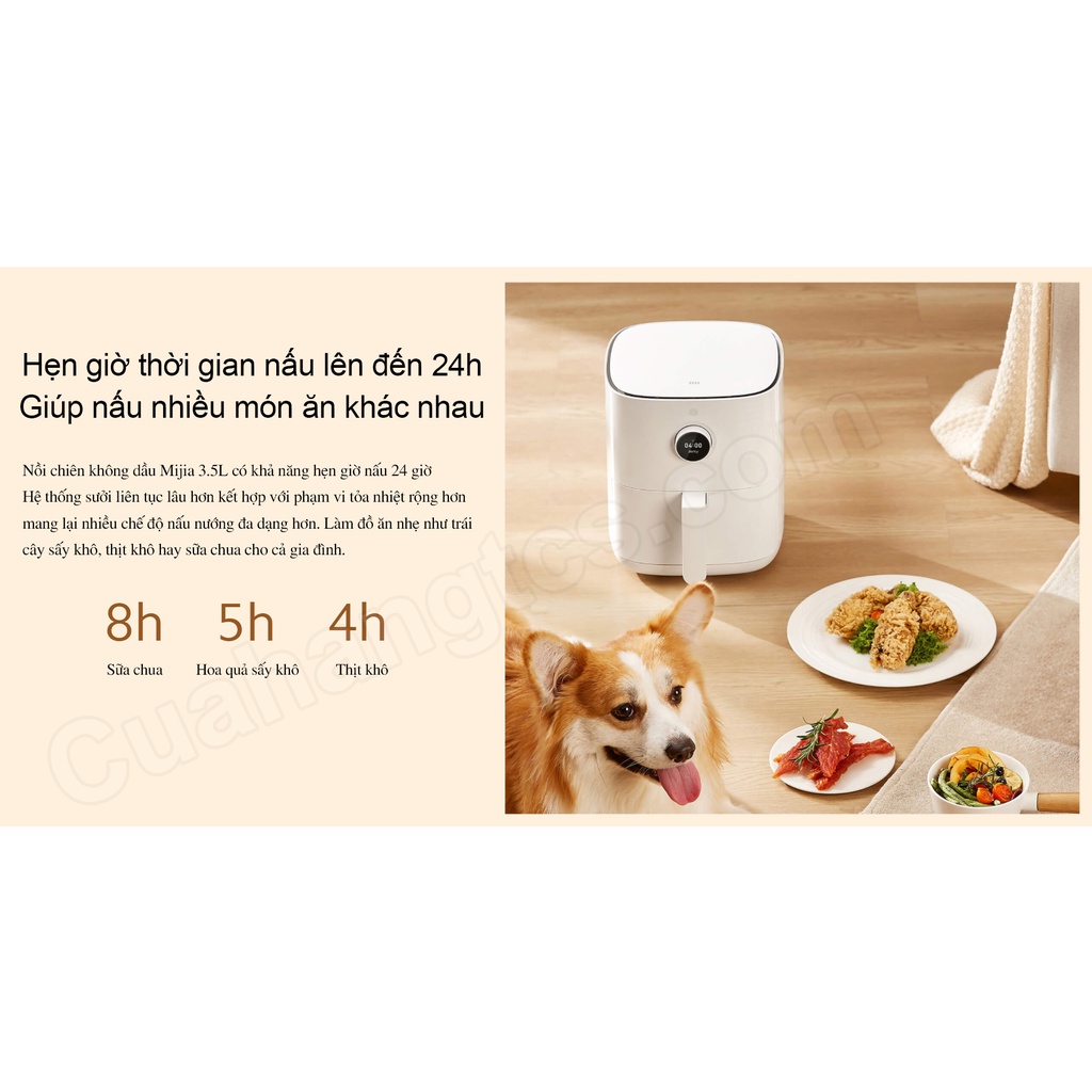 Bên cạnh đó, nồi chiên không khí Mijia 3.5L còn có khả năng hẹn giờ nấu 24 giờ. Sản phẩm cũng hỗ trợ kết nối app Mijia để mở khóa hơn 50 công thức nấu ăn khác nhau.