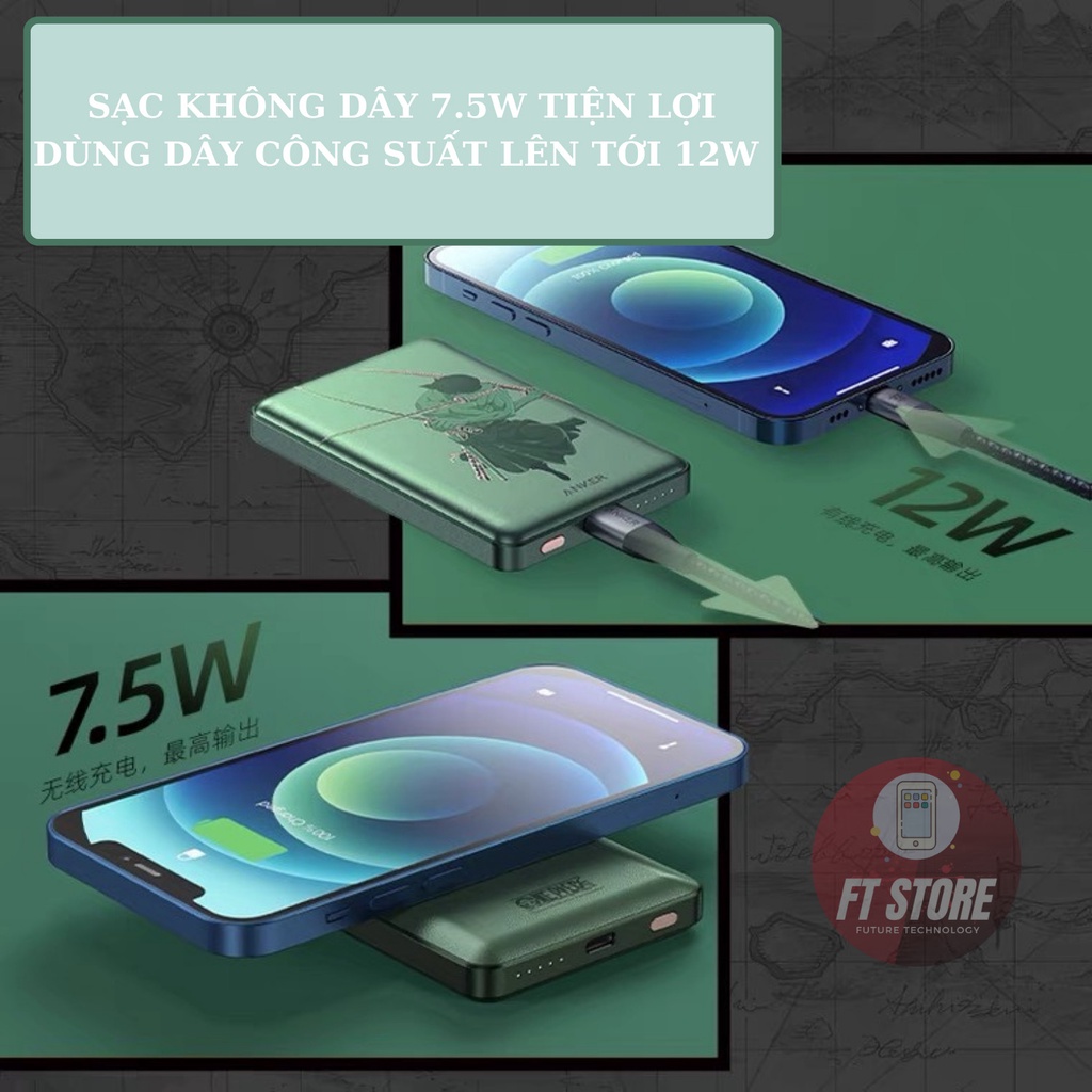 [GIAO HỎA TỐC] Pin dự phòng ANKER PowerCore 5000mAh Magsafe Không dây A9513 One Piece Zoro IPhone 12 13 Pro Max hít Từ t