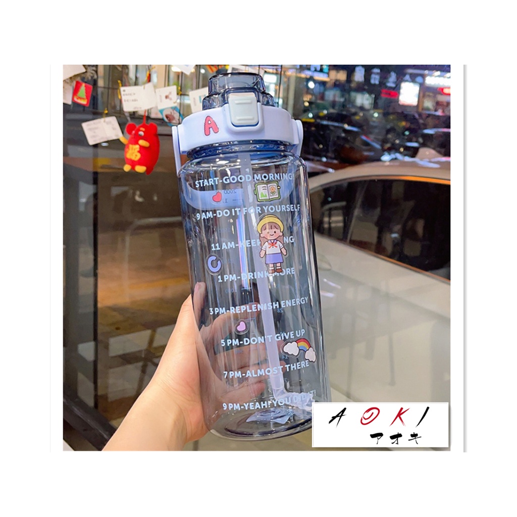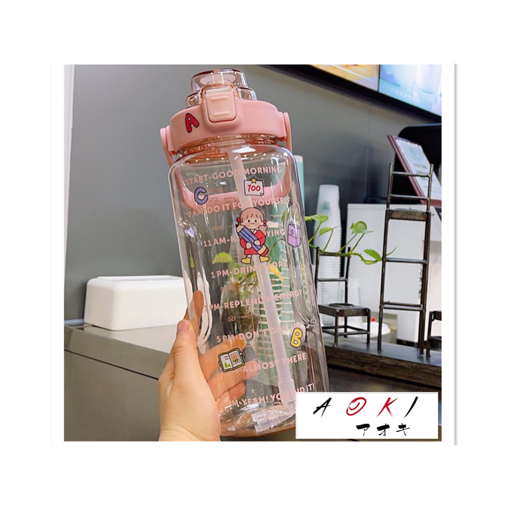 Giới thiệu 【GIAO NGAY】Bình Nước 2 lít Có Vạch Chia Nhắc nhở Uống Thân Bình Trong Suốt Siêu Sang Dễ Thương có TẶNG KÈM STICKER 2D