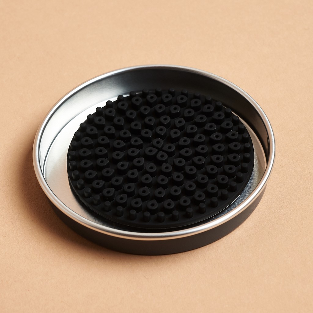 gồm 3 món: 1 xà phòng , 1 miếng pad silicone có mặt nhám để giặt cọ, 1 hộp đựng = thiếc gon gang, sạch sẽ.