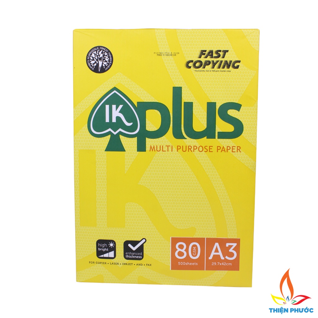 - Giấy in A3 IK Plus với định lượng 80gsm là loại giấy in rất phổ biến trên thị trường, được sản xuất dựa trên công nghệ in ấn hiện đại đến từ Indonesia.