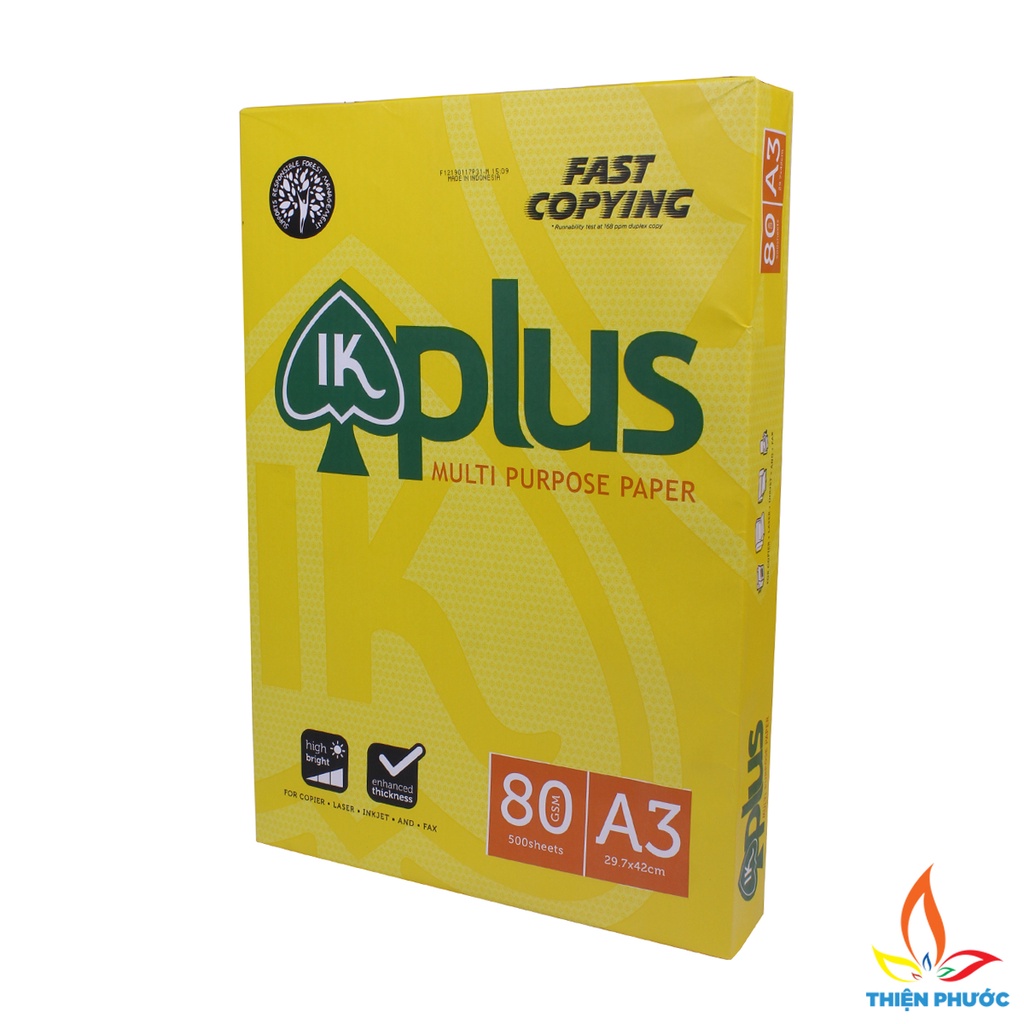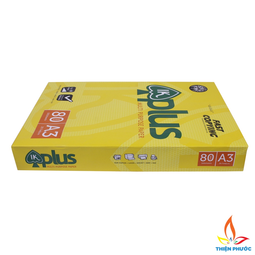 - Giấy A3 IK Plus là loại giấy in photo khá phổ biến và được khách hàng ưa chuộng hiện nay vì định lượng và độ dày phù hợp với các dòng máy in hiện đại, sử dụng giấy in A3 IK Plus 80gsm bạn sẽ không phải lo lắng về chất lượng các bản in, kẹt giấy khi in hay nhòe chữ.
