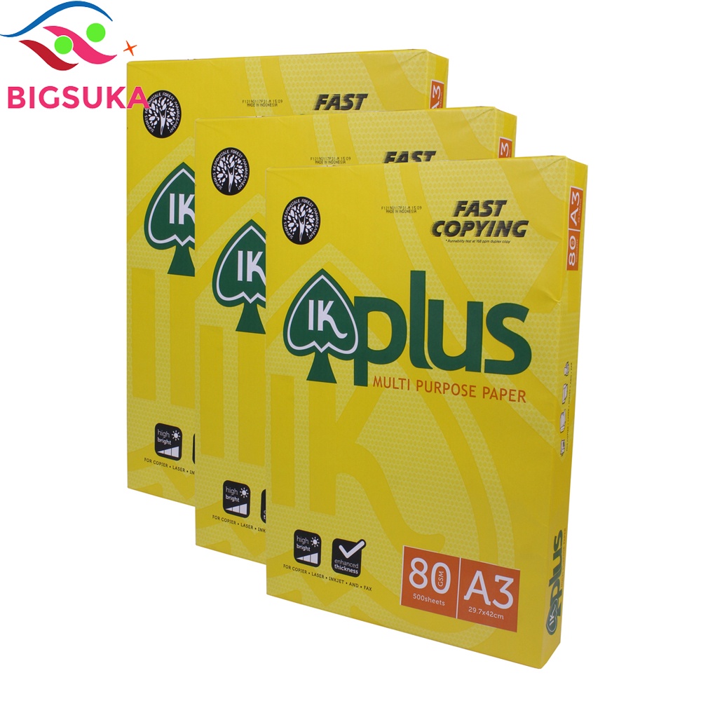 - Giấy A3 IK Plus là loại giấy in photo khá phổ biến và được khách hàng ưa chuộng hiện nay vì định lượng và độ dày phù hợp với các dòng máy in hiện đại, sử dụng giấy in A3 IK Plus 80gsm bạn sẽ không phải lo lắng về chất lượng các bản in, kẹt giấy khi in hay nhòe chữ.