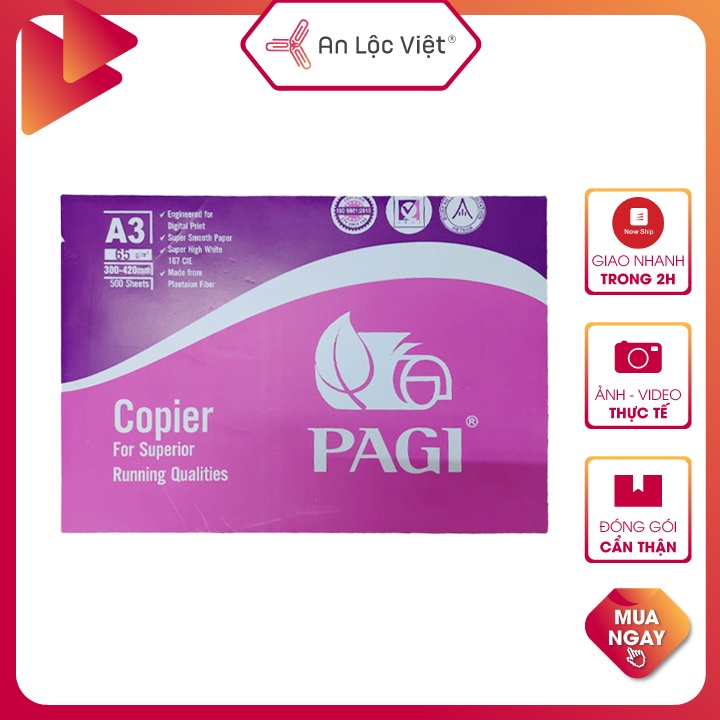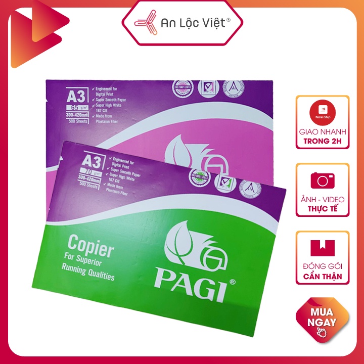 - Giấy A3 Pagi là loại giấy in photo phổ biến và thông dụng trong các văn phòng công ty hiện nay, sử dụng để in photo đóng thành cuốn hoặc dùng làm phiếu thu - chi - xuất - nhập - đơn đặt hàng