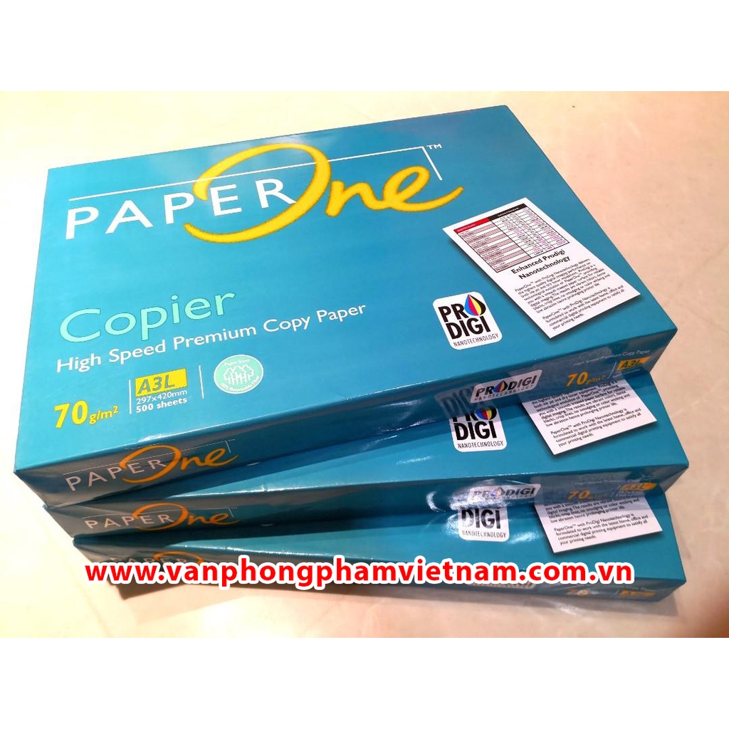 Giấy A3 Paper One 70 gsm*** Là loại giấy trắng đẹp , mịn, độ sắc nét cao, in 2 mặt không bị kẹt giấy, cho phép in, photocopy ra những văn bản, hình ảnh đẹp. Khách hàng có thể hoàn toàn yên tâm về chất lượng và giá cả khi sử dụng. Thích hợp với tất cả các loại Máy in phun, Máy in Laser, Máy Fax laser, Máy Photocopy. In đảo 2 mặt không bị kẹt giấy.