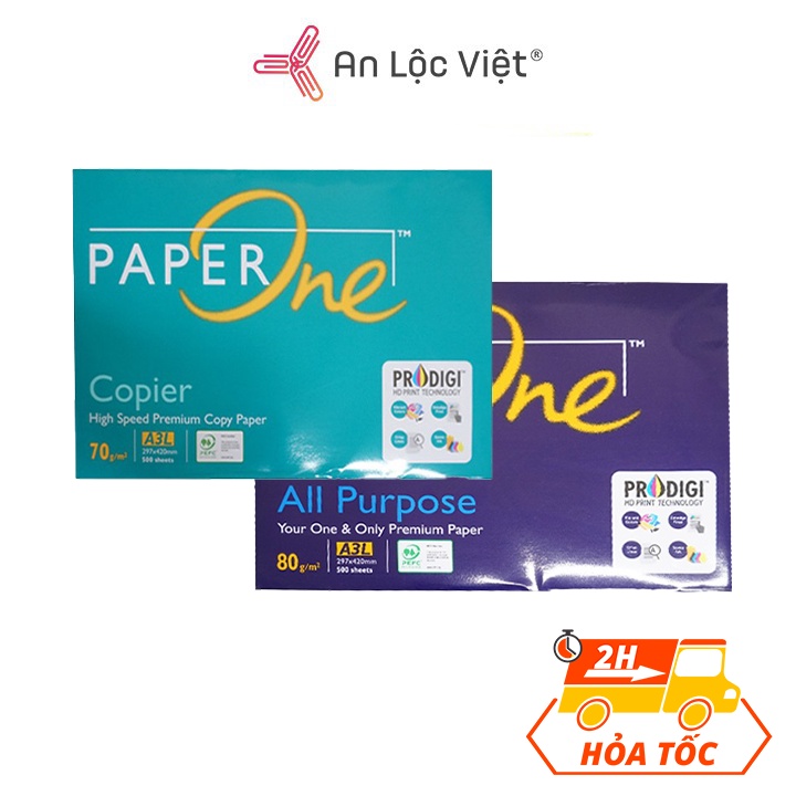- Đây là loại giấy in photo thuộc nhãn hiệu giấy Paper One, có định lượng 70gsm, 80gsm khổ giấy A3 phổ biến trên thị trường hiện nay.