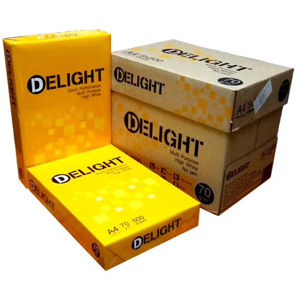 - Đây là loại giấy in photo khá phổ biến và được khách hàng ưa chuộng hiện nay vì định lượng và độ dày phù hợp với các dòng máy in hiện đại, sử dụng giấy A4 Delight bạn sẽ không phải lo lắng về chất lượng các bản in, kẹt giấy khi in hay nhòe chữ.