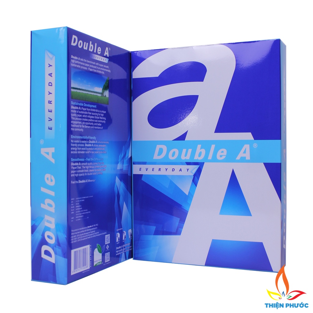 - Giấy A4 Double A là nhãn hiệu giấy in photo cao cấp, chất lượng giấy rất tốt, có những ưu điểm về độ trắng sáng, độ sắc nét trong in ấn. Giấy in A4 Double A 80gsm có kích thước khổ A4, định lượng giấy nặng 80gram/m2, giấy có độ dày phù hợp với các dòng máy in photo hiện đại.