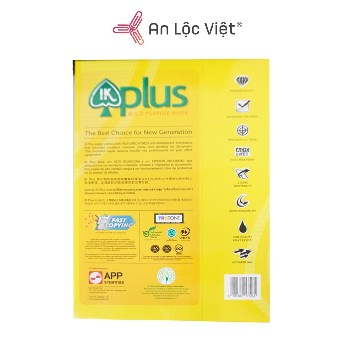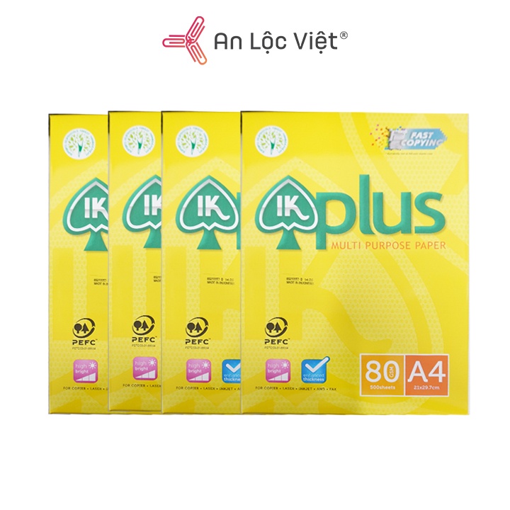 - Giấy Ik PLus được sử dụng cho tất cả các loại máy in, máy photocopy, máy fax, bề mặt không có bụi giấy, độ nhẵn tuyệt vời, không lo bị kẹt giấy trong quá trình in.