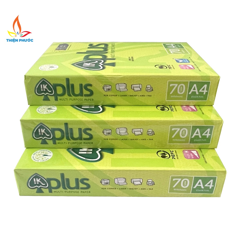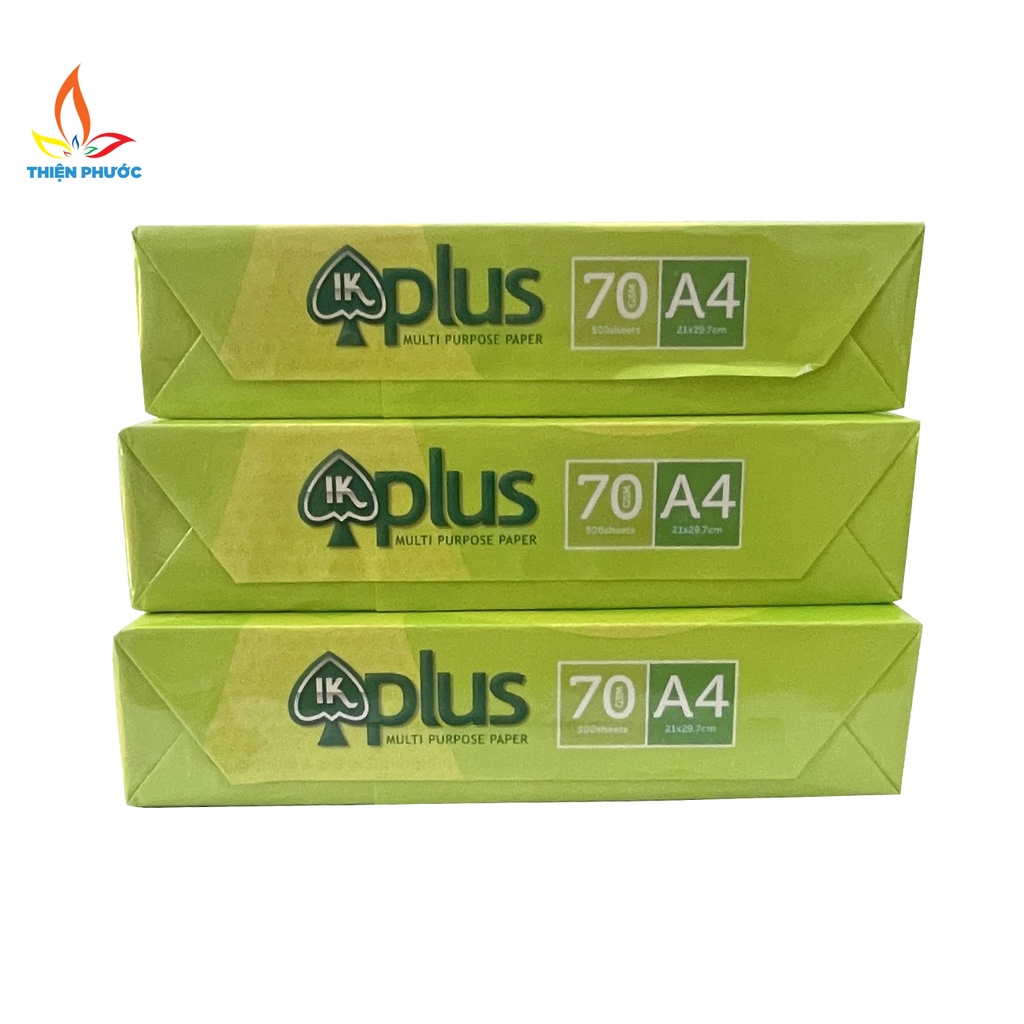 - Giấy A4 IK Plus là loại giấy in photo khá phổ biến và được khách hàng ưa chuộng hiện nay vì định lượng và độ dày phù hợp với các dòng máy in hiện đại, sử dụng giấy in A4 IK Plus gsm bạn sẽ không phải lo lắng về chất lượng các bản in, kẹt giấy khi in hay nhòe chữ.