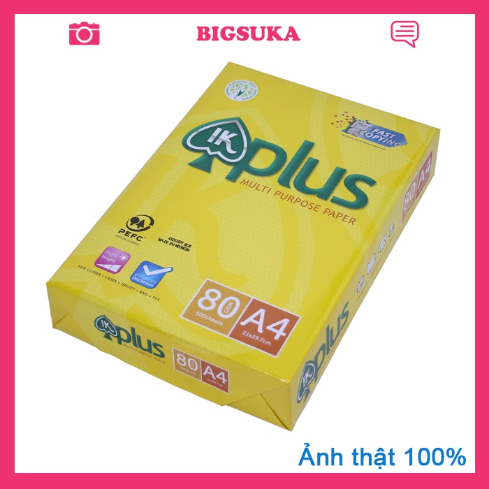 - Giấy A4 IK Plus là loại giấy in photo khá phổ biến và được khách hàng ưa chuộng hiện nay vì định lượng và độ dày phù hợp với các dòng máy in hiện đại, sử dụng giấy in A4 IK Plus gsm bạn sẽ không phải lo lắng về chất lượng các bản in, kẹt giấy khi in hay nhòe chữ.