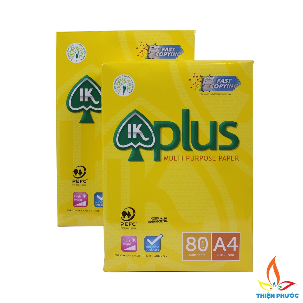 - Giấy A4 IK Plus là loại giấy in photo khá phổ biến và được khách hàng ưa chuộng hiện nay vì định lượng và độ dày phù hợp với các dòng máy in hiện đại, sử dụng giấy in A4 IK Plus gsm bạn sẽ không phải lo lắng về chất lượng các bản in, kẹt giấy khi in hay nhòe chữ.