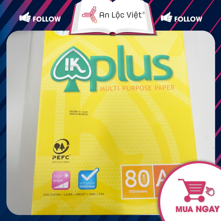 - Giấy Ik PLus được sử dụng cho tất cả các loại máy in, máy photocopy, máy fax, bề mặt không có bụi giấy, độ nhẵn tuyệt vời, không lo bị kẹt giấy trong quá trình in.