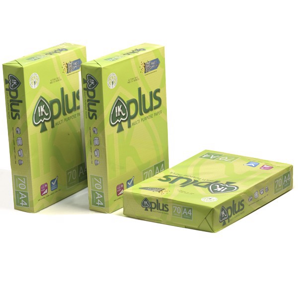 Giấy IK Plus A4 là sản phẩm chuyên dùng trong việc in ấn và photo. Giấy với kích thước A4, có độ trắng đẹp, thân thiện với môi trường và thích hợp với hầu hết các loại Máy in phun, Máy in Laser, Máy Fax laser, Máy Photocopy.
