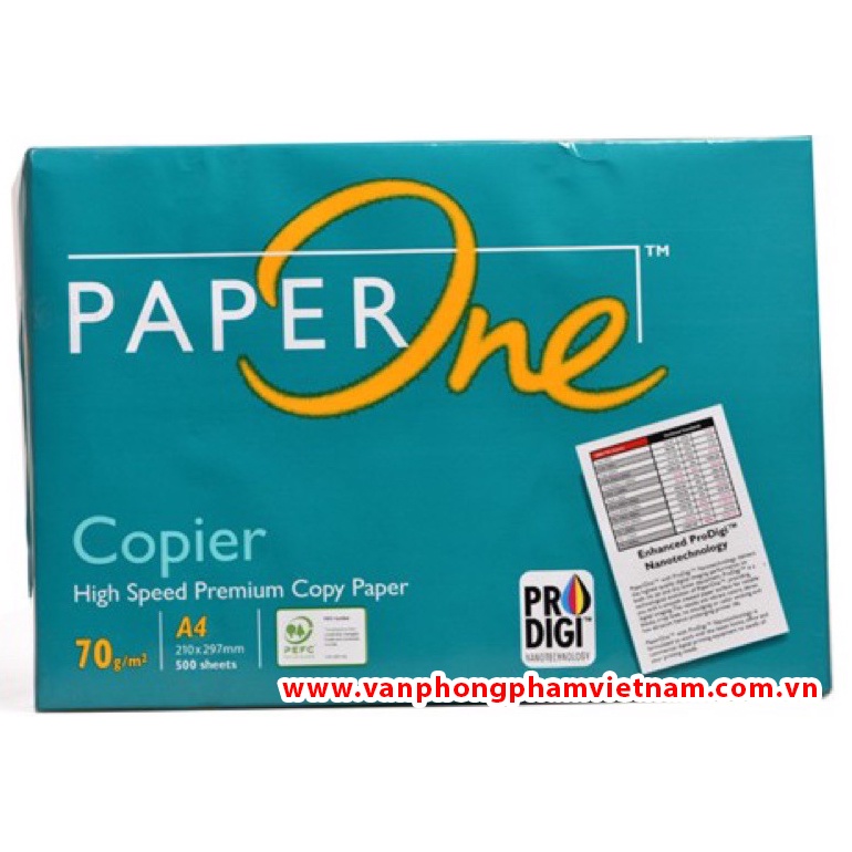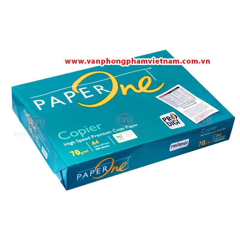 Giấy A4 Paper One 70 gsm*** Là loại giấy trắng đẹp , mịn, độ sắc nét cao, in 2 mặt không bị kẹt giấy, cho phép in, photocopy ra những văn bản, hình ảnh đẹp. Khách hàng có thể hoàn toàn yên tâm về chất lượng và giá cả khi sử dụng. Thích hợp với tất cả các loại Máy in phun, Máy in Laser, Máy Fax laser, Máy Photocopy. In đảo 2 mặt không bị kẹt giấy.