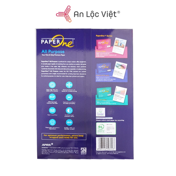 Giấy in A4 PaperOne 70 gsm - 80gsm với tiêu chuẩn ISO 9001 và ISO 14001 về hệ thống quản lý chất lượng và quản lý môi trường.