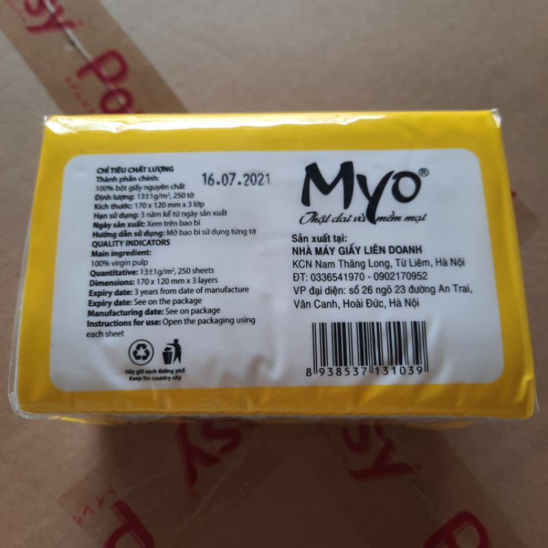 Giấy ăn rút ngắn gấu trúc MyO được sản xuất tại Nhà Máy Giấy Liên Doanh.-Thành phần chính